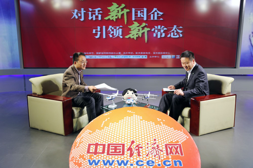中航通飛華北飛機公司董事長,黨委書記張樞瑋做客《中經(jīng)在線訪談特別節(jié)目——對話新國企,引領(lǐng)新常態(tài)》。裴小閣/攝