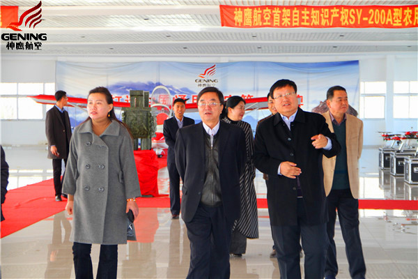 高海濤巡視員及工作組參觀了通遼市神鷹飛機制造在限公司。通遼市神鷹通用航空有限公司董事長邱志剛向檢查組詳細介紹了“SY-200”農用飛機和植保無人機研發(fā)制造情況,匯報了公司當前和今后的發(fā)展目標和方向。期間,高海濤巡視員還親切地詢問了公司在發(fā)展建設中遇到的困難。
