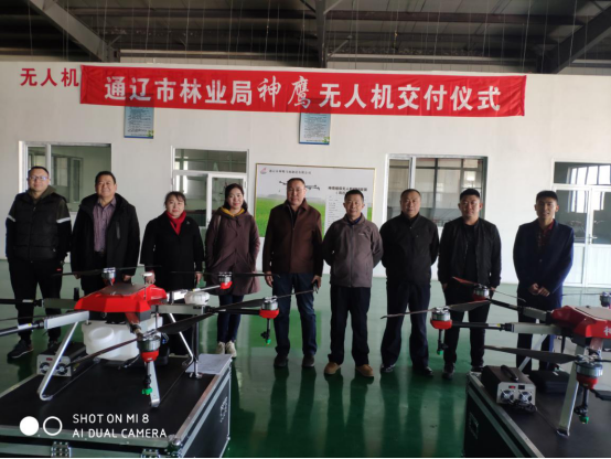 2019年3月11日,“神鷹”植保無人機(jī)交付儀式在通遼市神鷹飛機(jī)制造有限公司舉行,通遼市林業(yè)局森林病蟲害防治檢疫站敖特根、李仁貴等領(lǐng)導(dǎo),以及通遼市神鷹通用航空有限公司總經(jīng)理司治莊、副總經(jīng)理齊洪峰、通遼市神鷹飛機(jī)制造有限公司副總經(jīng)理魏建東參加了交付儀式。