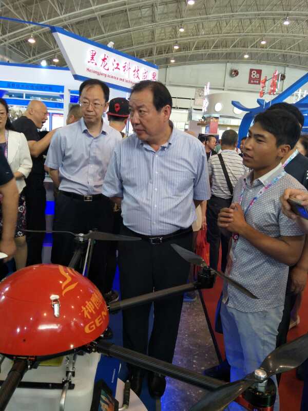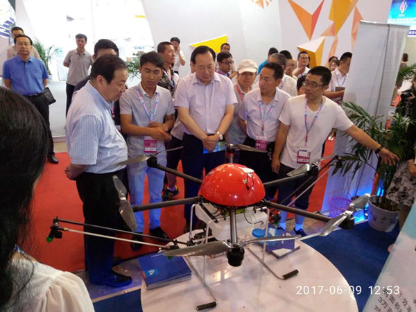 自治區(qū)副主席白向群蒞臨展會(huì),參觀公司參展的植保無(wú)人飛機(jī)。