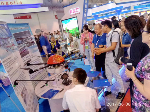在此次展會(huì)上,通遼市神鷹飛機(jī)制造有限公司自主研發(fā)的“SY-200”農(nóng)用飛機(jī)倍受與會(huì)人員關(guān)注,尤其是一些國(guó)外客商對(duì)該款飛機(jī)產(chǎn)品產(chǎn)生了濃厚興趣。“SY-200”農(nóng)用飛機(jī)是通遼市神鷹飛機(jī)制造有限公司組織科研團(tuán)隊(duì),經(jīng)過(guò)幾年刻苦鉆研的新一代輕型農(nóng)用飛機(jī),年生產(chǎn)能力300余架,主要用于農(nóng)、林作物病蟲(chóng)害防治、肥料噴施;草原滅鼠滅蝗;沙漠飛播造林、航空拍攝;航空測(cè)繪;飛行訓(xùn)練等,其中農(nóng)林作業(yè)效果尤為顯著。此次參展的農(nóng)用植保無(wú)人機(jī)作為該公司自主研發(fā)的新一代植保無(wú)人機(jī),已通過(guò)國(guó)家植保機(jī)械質(zhì)量監(jiān)督檢驗(yàn)中心的質(zhì)量檢驗(yàn),年生產(chǎn)能力2000余架,具有安全主、高效、精準(zhǔn)等特點(diǎn),該款產(chǎn)品也極大地吸引了參觀者的眼球,內(nèi)蒙古自治區(qū)白向群副主席也親臨展位參觀指導(dǎo),并與工作人員親切交流。參展期間,通遼市神鷹飛機(jī)制造有限公司已與多家企業(yè)和單位達(dá)成生產(chǎn)合作意向。