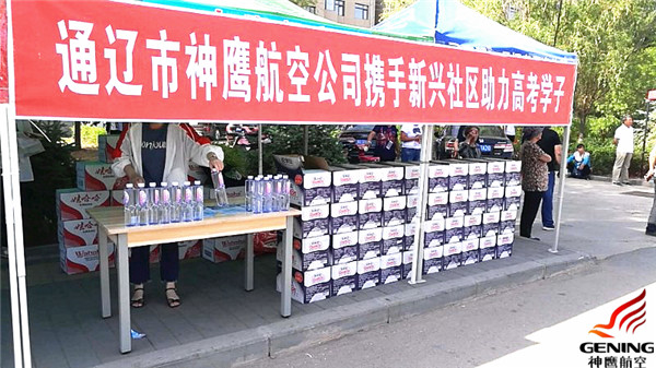 為了給莘莘學(xué)子們加油打氣,用實際行動表達對考生和家長們的關(guān)切之情,6月7日一大早,通遼市神鷹通用航空有限公司攜手新興社區(qū)開展的以“護航高考獻愛心”為主題的愛心送水活動正式開始了,活動地點設(shè)在了通遼一中和奈曼一中考點外,同時愛心送水點搭建了臨時帳篷,以方便家長們休息等待。