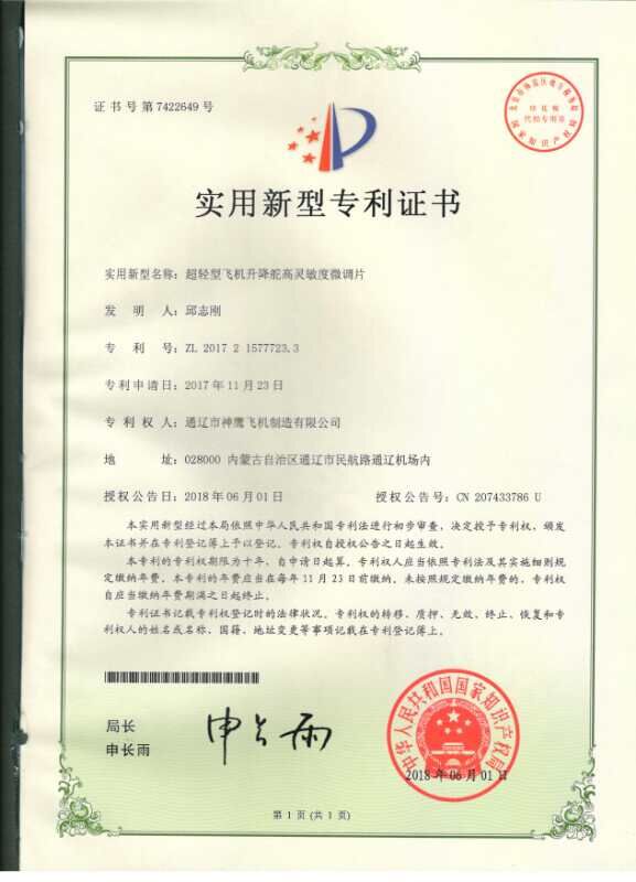 超輕型飛機升降舵高靈敏度微調(diào)片
